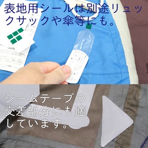 ■応急用粘着ストレッチシールは、レインウェア他、テント、リュックサック、傘などにも別途ご使用いただけます。(素材,材質などにより)